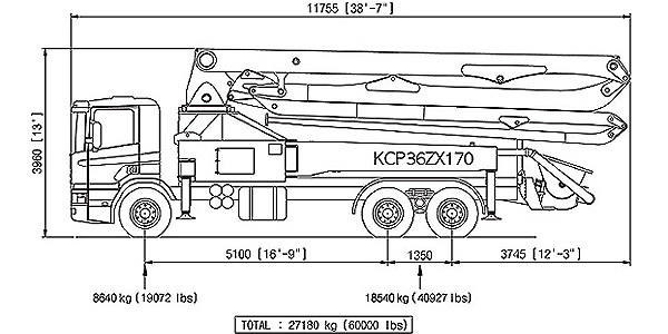 Μέγιστο Βάρος Αντλίας (Χωρίς Φορτηγό) 20500kg (45250 lbs)